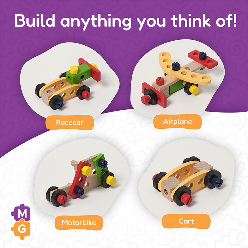 There's no need to call an electrician to change a lightbulb or a janitor to fix a door knob. This toy teaches life skills that will always come in handy. Start developing their fine motor and problem-solving skills early with wooden tools and gradually work your way up.